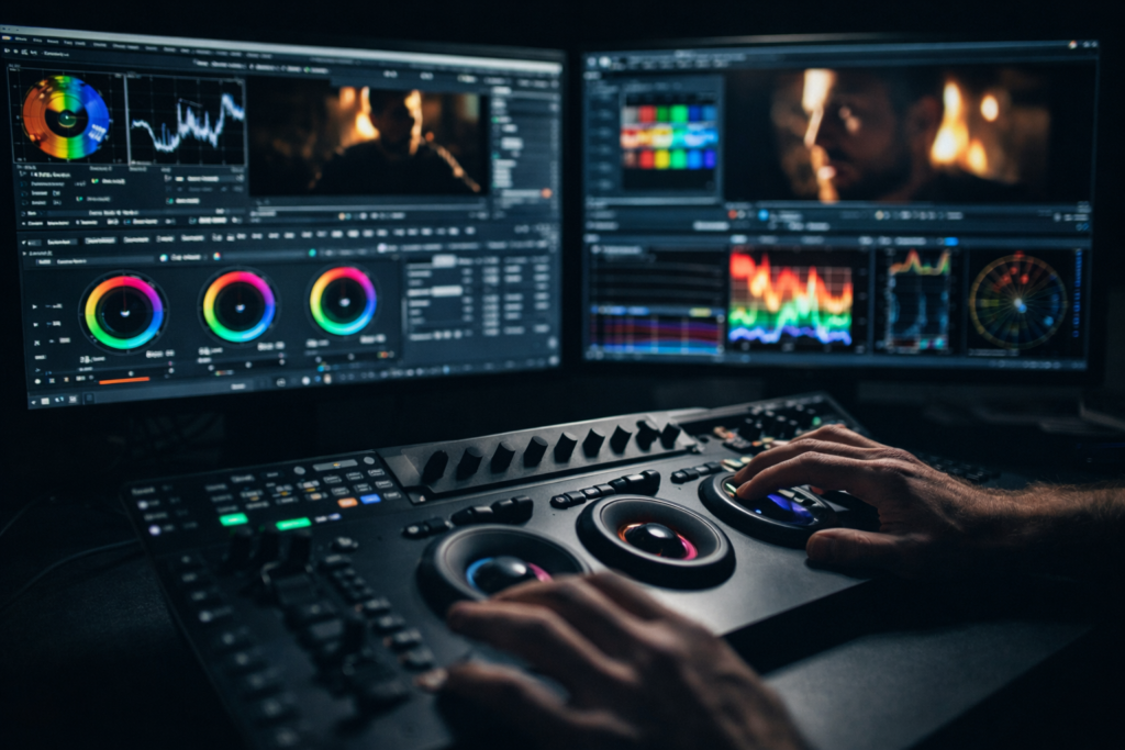 Por supuesto. Además de la dirección de fotografía y el rodaje en el set, ofrezco servicios completos de postproducción que incluyen el montaje, la edición y el etalonaje (corrección de color), asegurando que el acabado final de la pieza audiovisual tenga la atmósfera, el contraste y el ‘look’ cinematográfico perfecto.